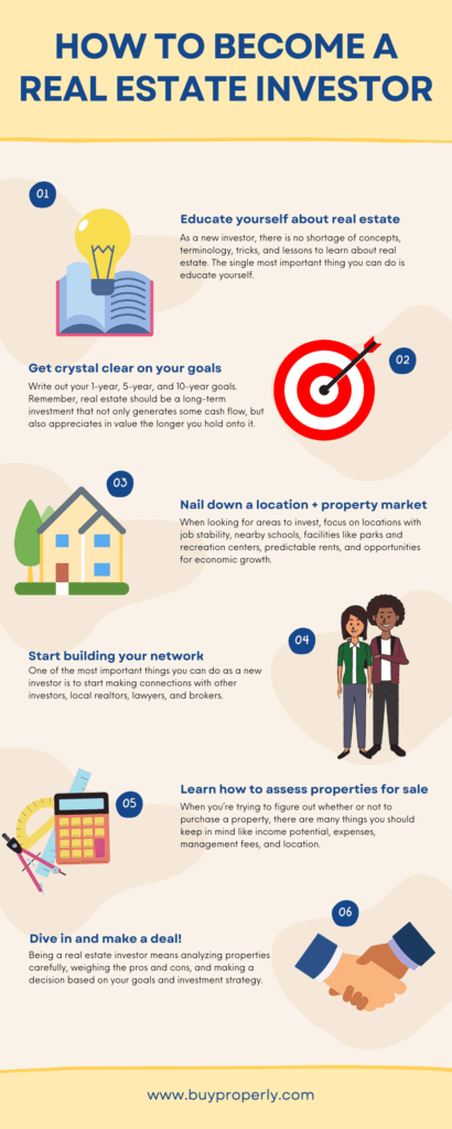 Now, let’s dive into the six steps you’ll need to follow to become a successful real estate investor.